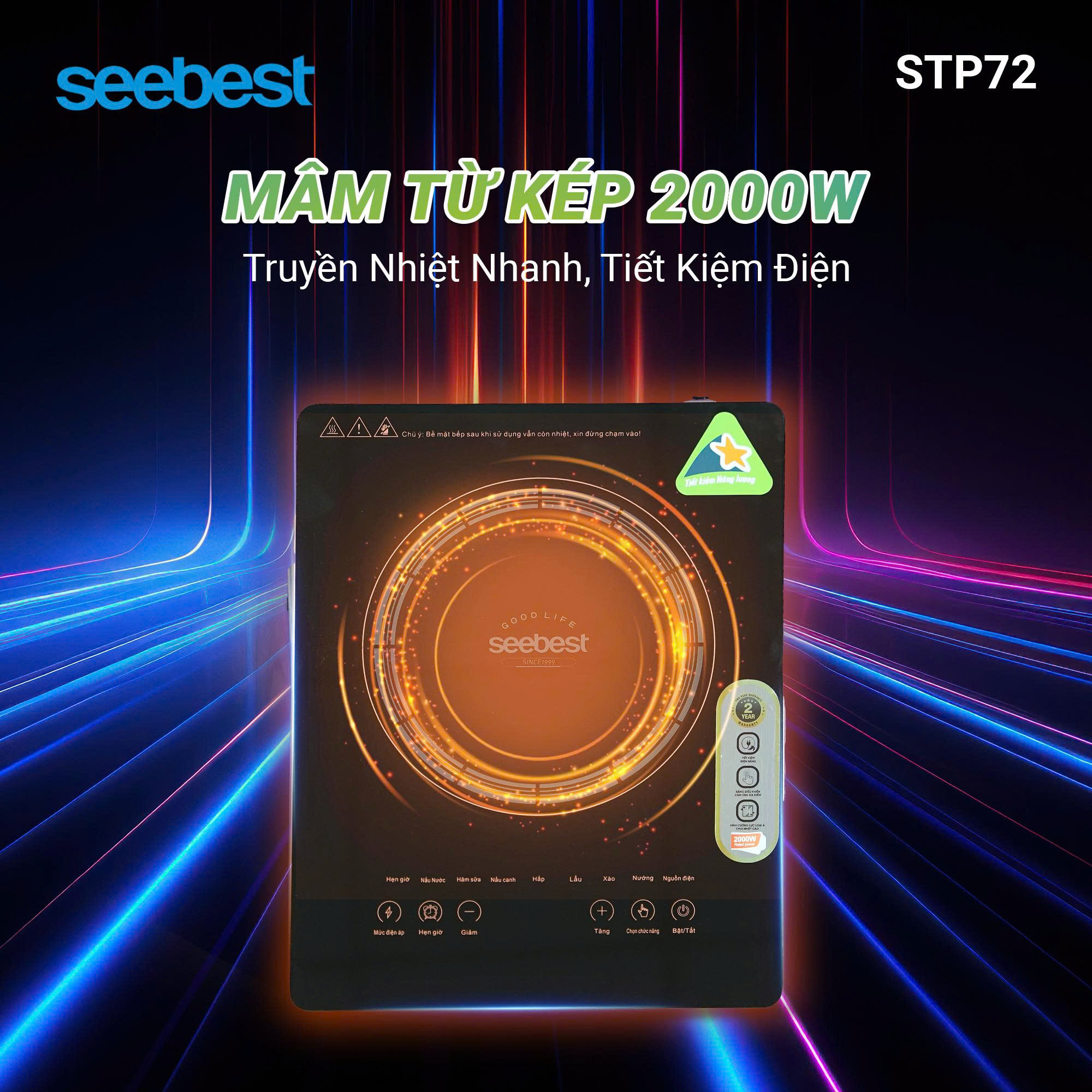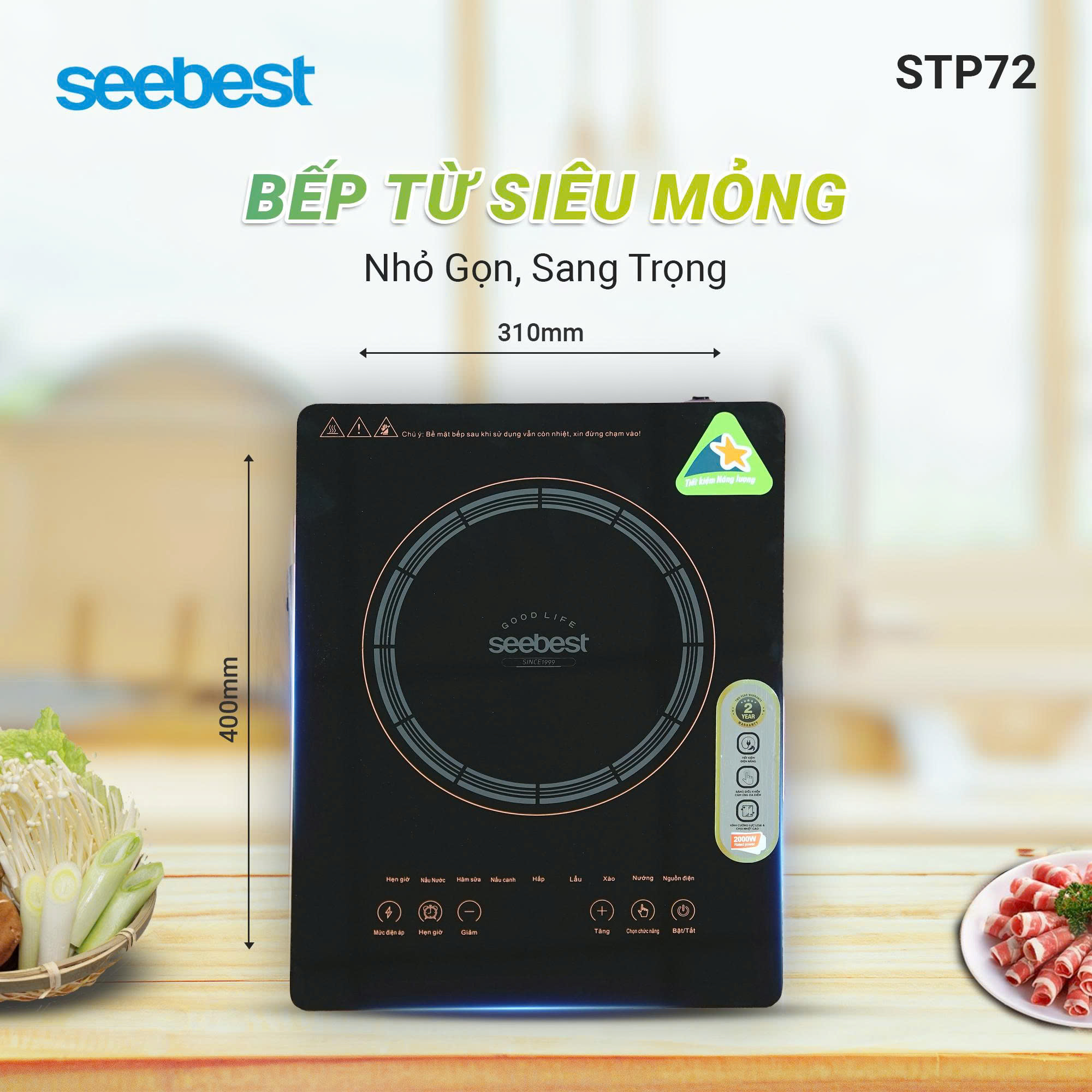 - Bếp từ đơn Seebest STP72 là mẫu bếp từ với thiết siêu mỏng, bo viền mang đến độ thẩm mỹ cao tăng thêm độ thẩm mỹ, sang trong cho không gian bếp của gia đình.