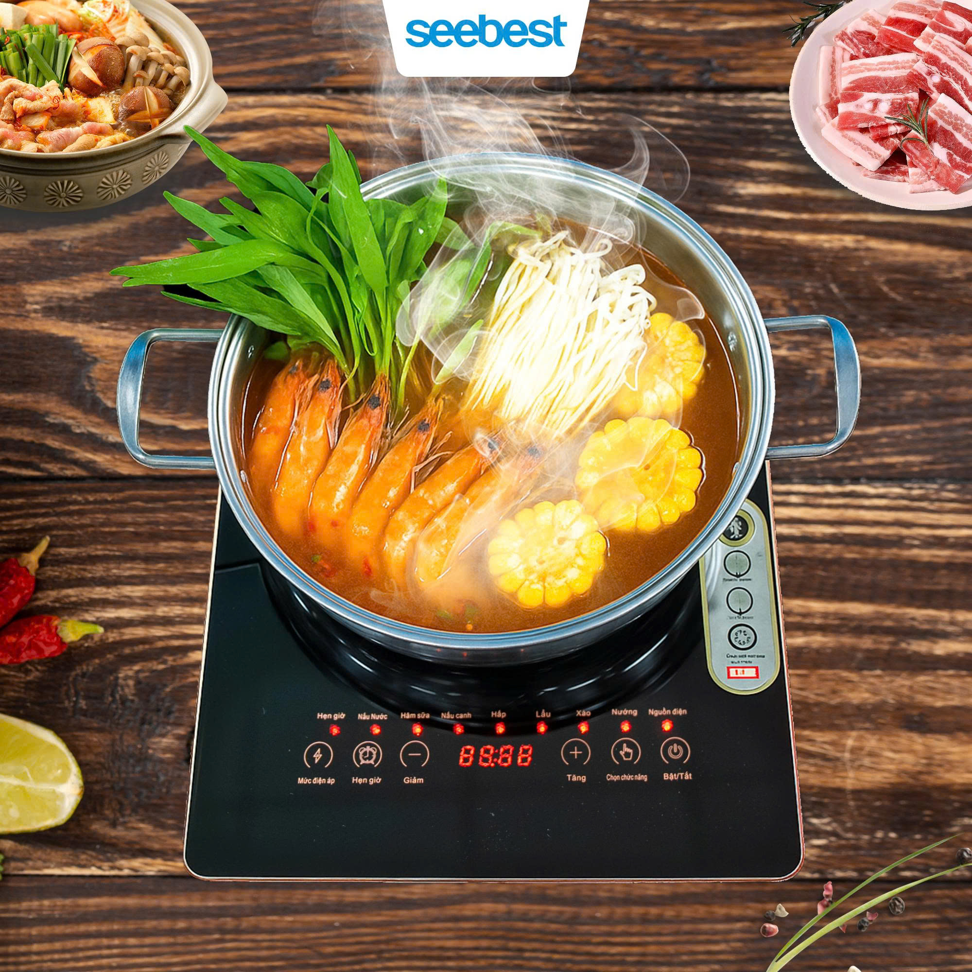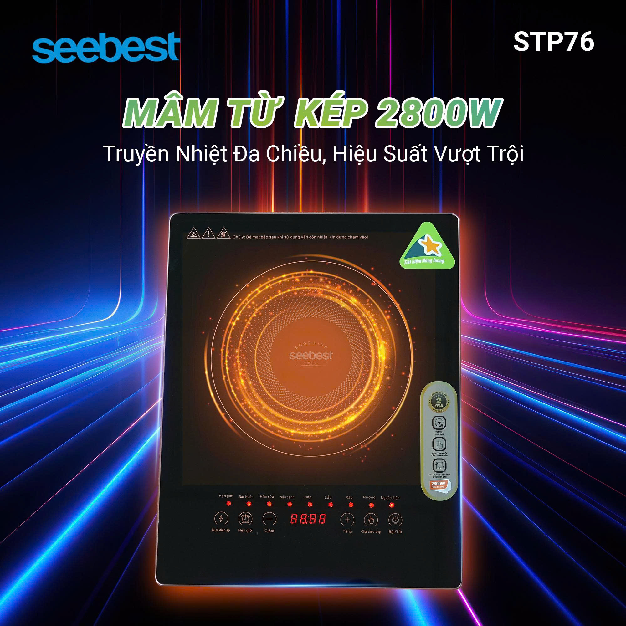 - Bếp từ đơn Seebest STP76 là mẫu bếp từ với thiết siêu mỏng, bo viền mang đến độ thẩm mỹ cao tăng thêm độ thẩm mỹ, sang trong cho không gian bếp của gia đình.