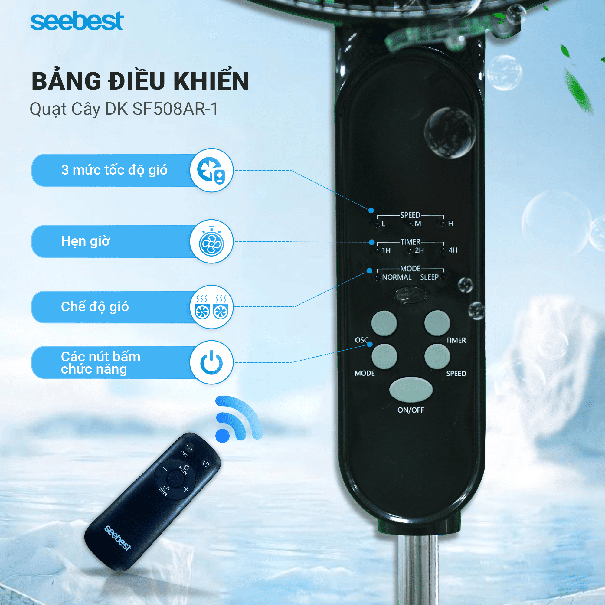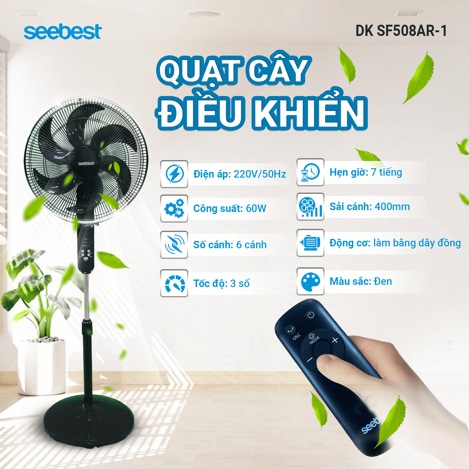 ✅ Quạt đứng SF508AR-1 SEEBEST là mã quạt cây có kèm điều khiển từ xa mang tới sự tiện lợi cho quý khách hàng