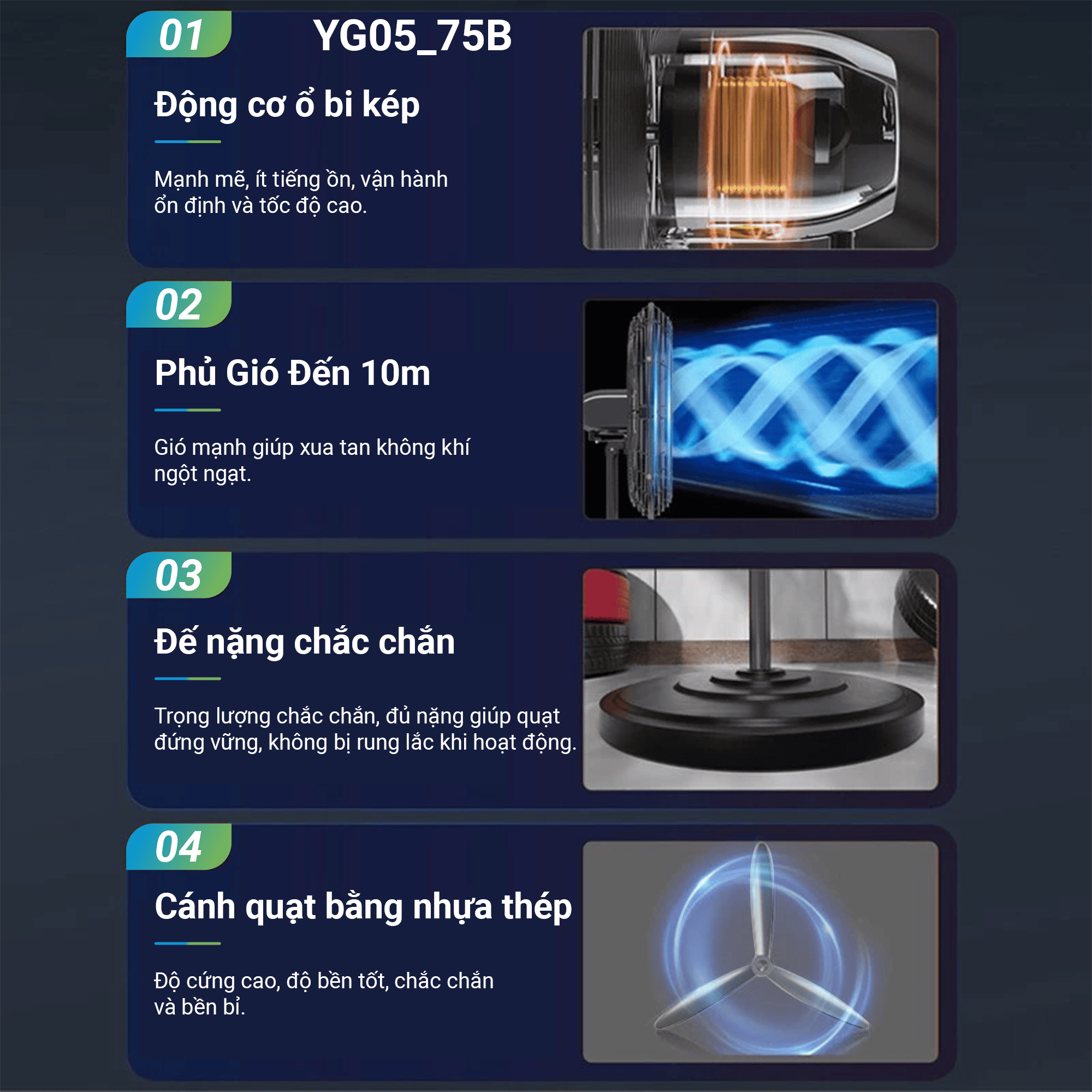 | Chất liệu cánh quạt | Nhôm |