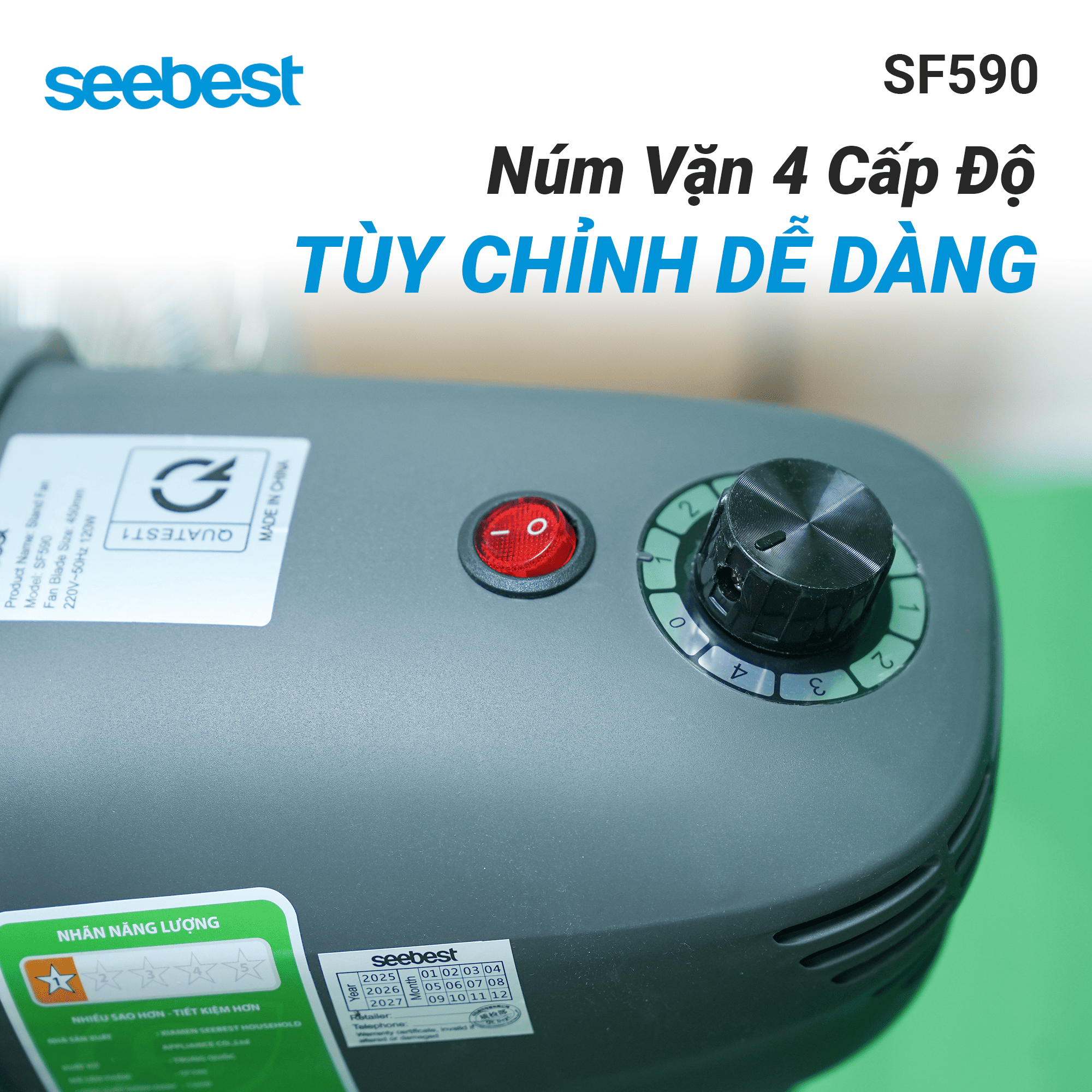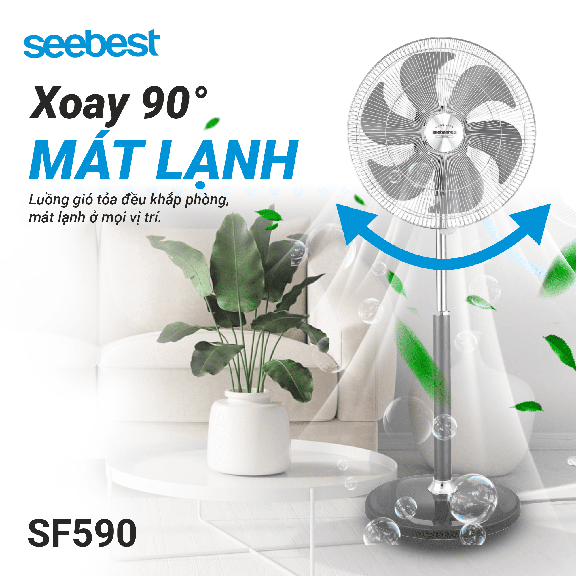 Quạt đứng SEEBEST SF-590 với công suất 120W mạnh mẽ, cùng với sự thiết kế mới nhất xen kẽ sự hiện đại SF-590 được trang bị trên mình mẫu cánh quạt nhôm chắc chắn, sắc nét, đường kính cánh quạt lên tới 450mm làm mát nhanh chóng.